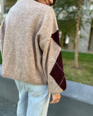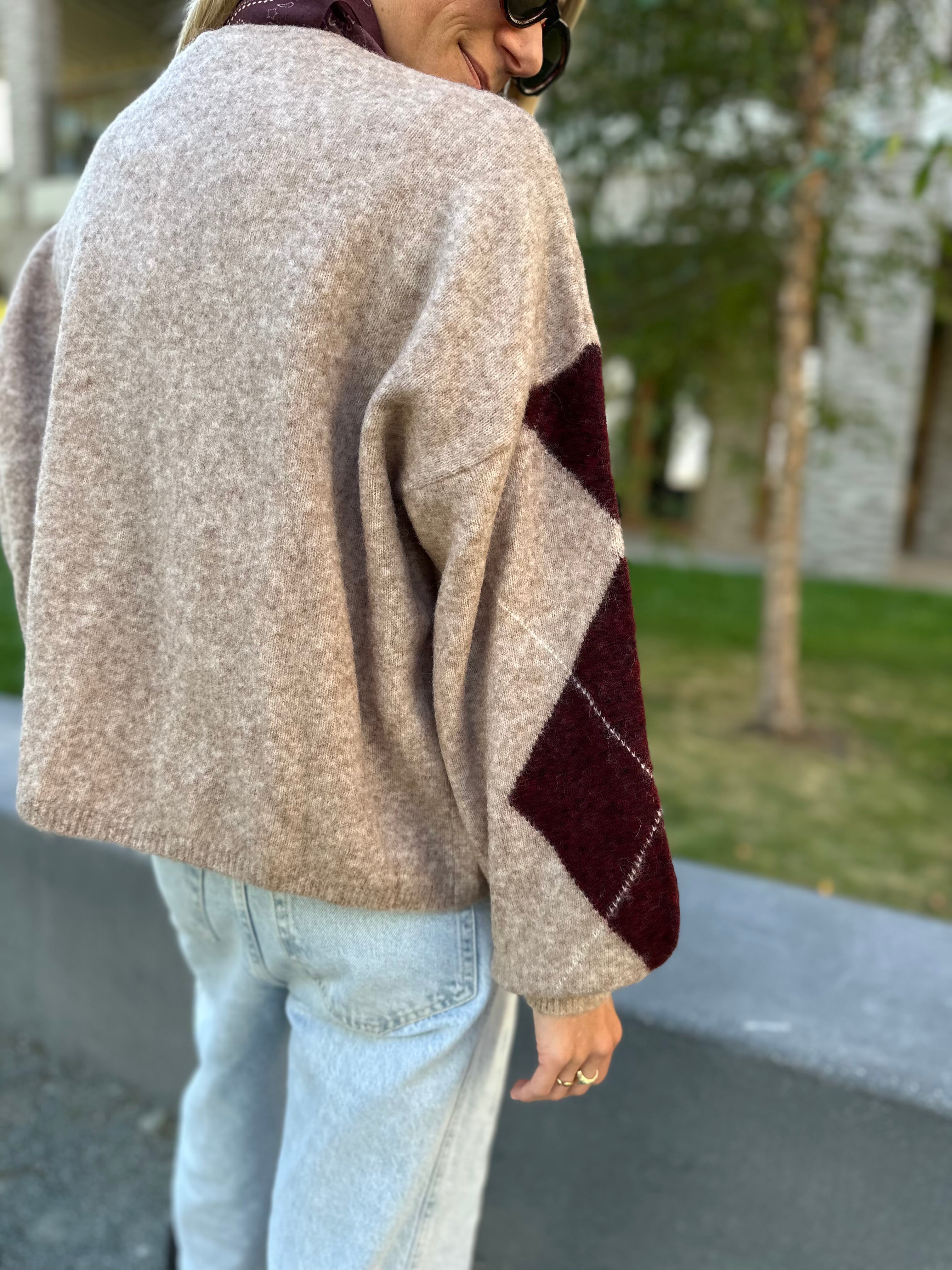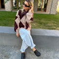 The Logan Knit Cardigan features a relaxed, oversized fit and a bold, geometric pattern that adds a statement to any outfit. Designed for everyday comfort, it pairs easily with tailored pants or denim, making it a versatile layering piece for cooler days.