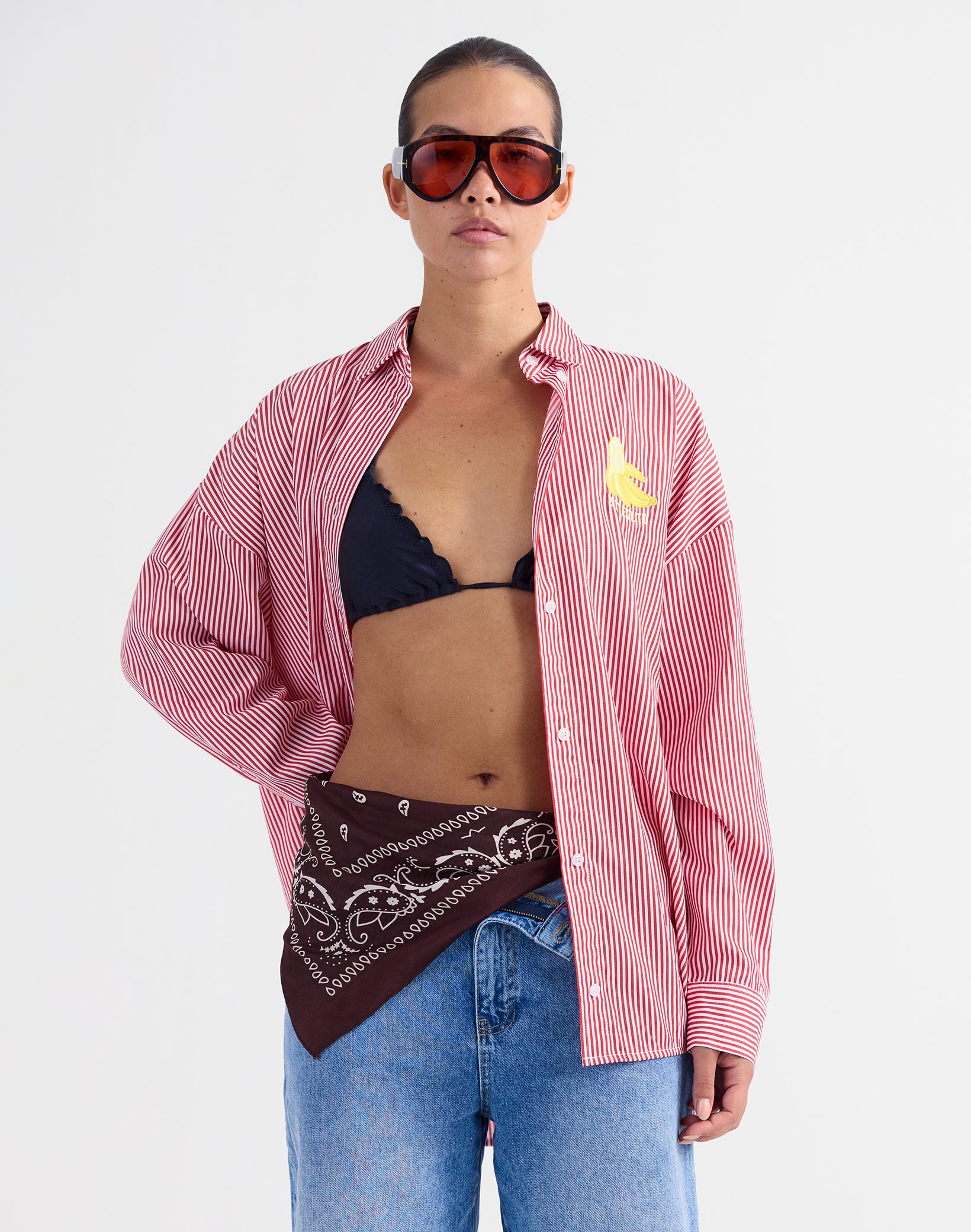Meet the Lua Blouse: a classic stripe with a playful Madeira twist. The relaxed fit and red-and-white stripes are timeless, while the banana embroidery adds a signature Stieglitz touch. Wear it open or buttoned up—anything goes. Easy, with a touch of whimsy.